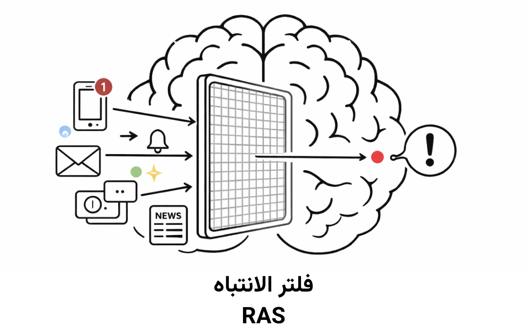 تشير نماذج تنظيم الانتباه في الدماغ إلى وجود نظام يعمل كمرشح للمحفزات يسمى نظام التنشيط الشبكي (Reticular Activating System – RAS)، وهو المسؤول عن تحديد أي الإشارات تستحق الوصول إلى الوعي وأيها يتم تجاهله.